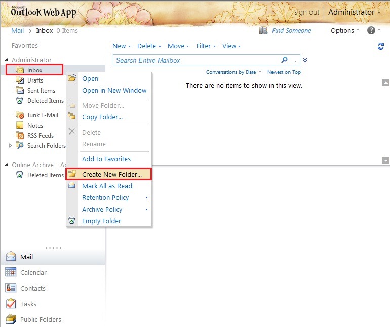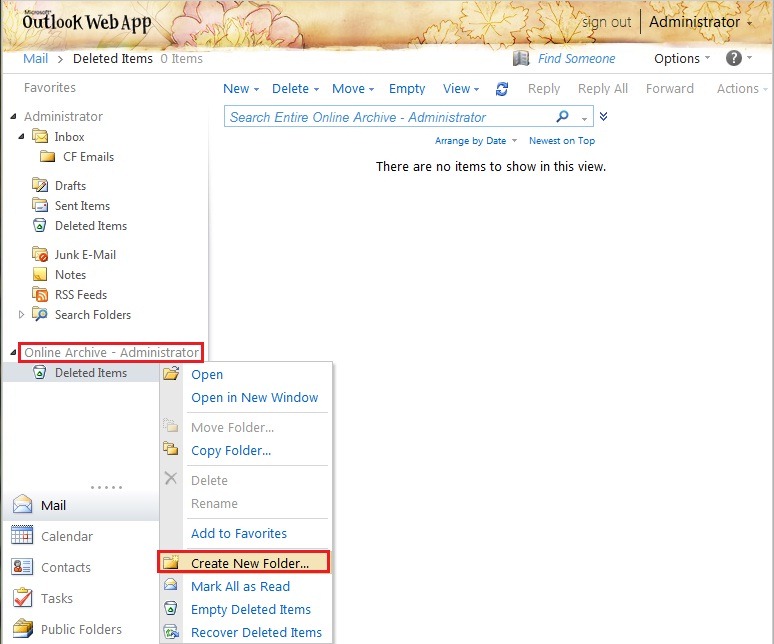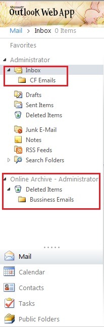4. Σε περίπτωση, που ο χρήστης μας έχει ενεργοποιημένο το Online Archive (όπως στο παράδειγμα μας), μπορούμε να δημιουργήσουμε φάκελο ή φακέλους στο Online Archive.