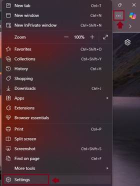 - Open Edge and click on the three-dot menu in the toolbar.