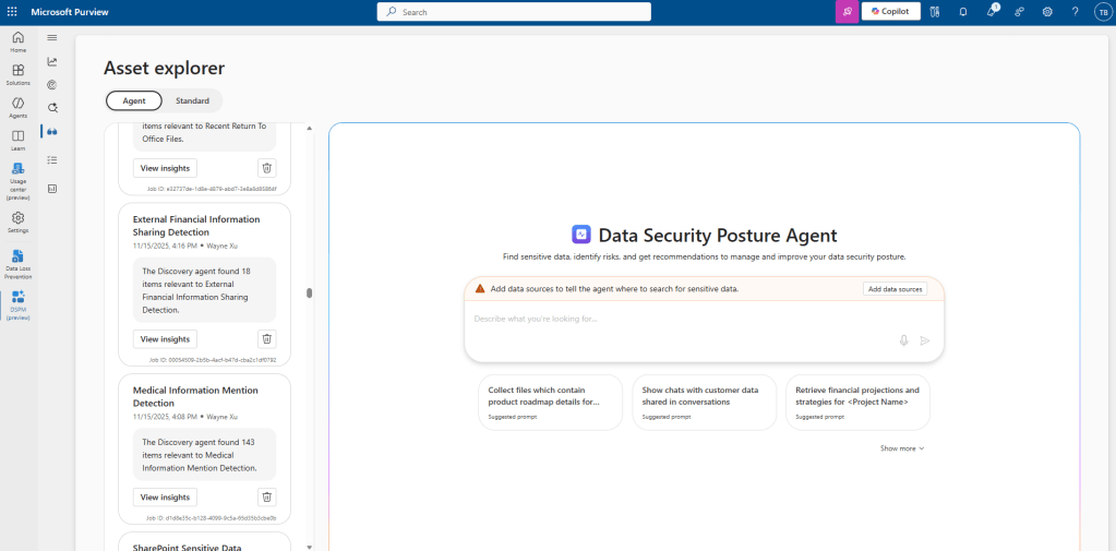 Microsoft is introducing a major evolution of Purview Data Security Posture Management (DSPM) to help organizations strengthen data security and confidently embrace AI. The new DSPM experience unifies visibility and control across traditional data and AI-driven environments, delivering outcome-based guided workflows that turn insights into actionable stepsβso teams can prioritize risks and remediate faster. It brings AI observability, enhanced posture reporting, and intelligent Security Copilot agents to automate tasks like triage and policy management.