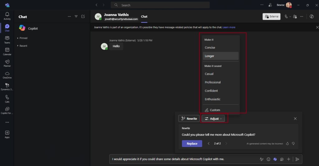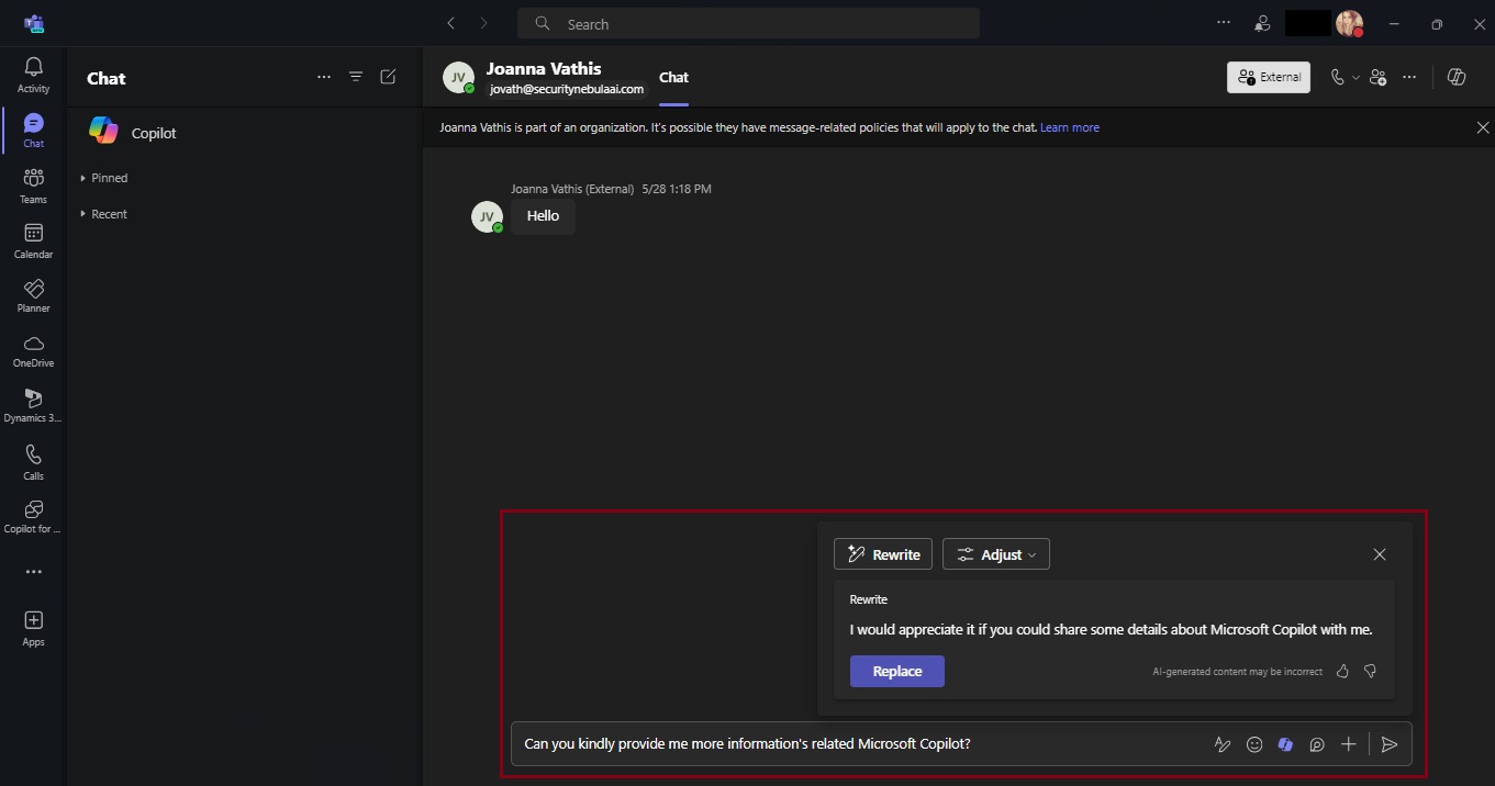 Copilot will only work with your M365 tenant data and won’t be able to access other companies’ data. Plus, your data doesn’t train the AI for other companies to leverage..